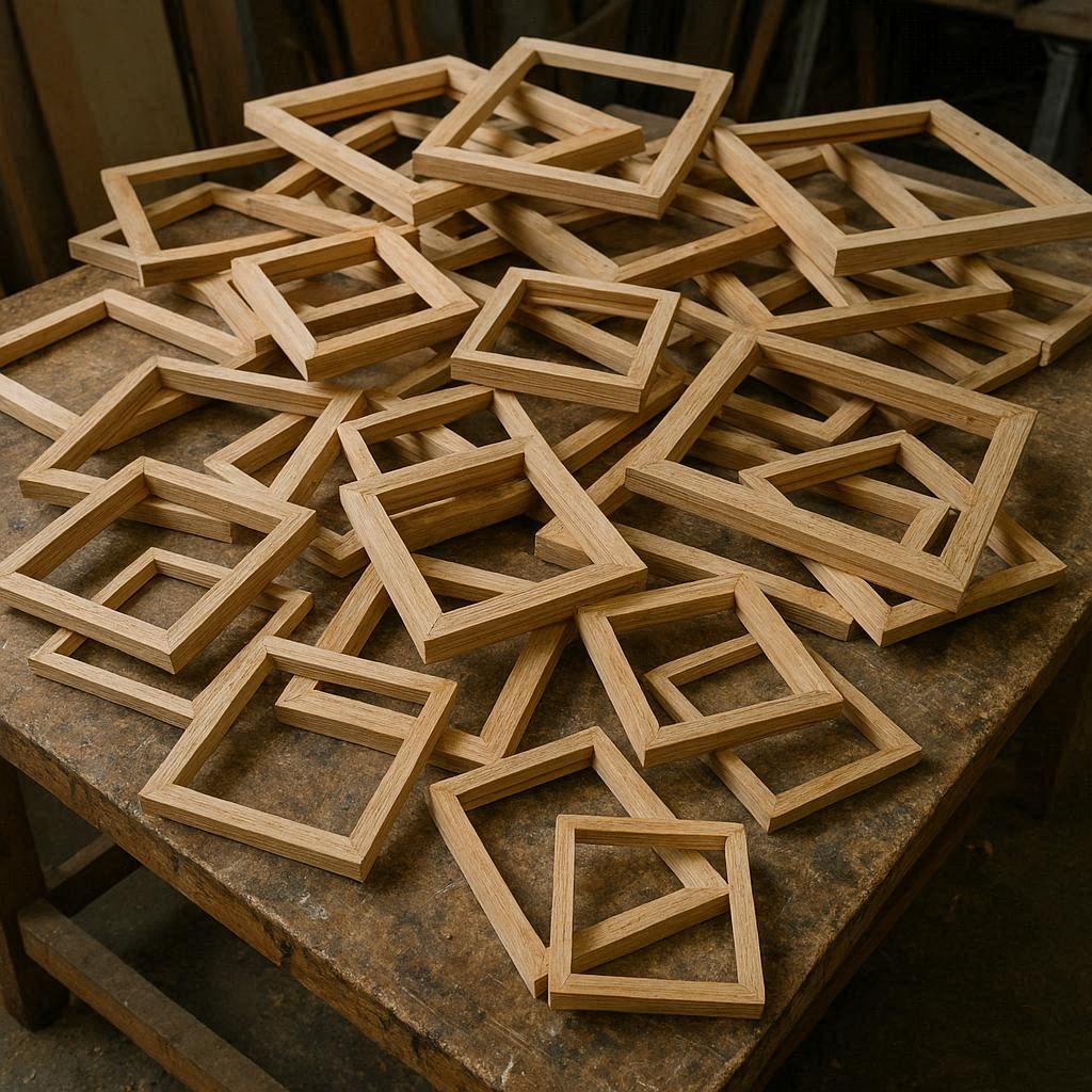 All our frames and lettering are custom and made in house. There are two standard frames. custom frames are made to measure.